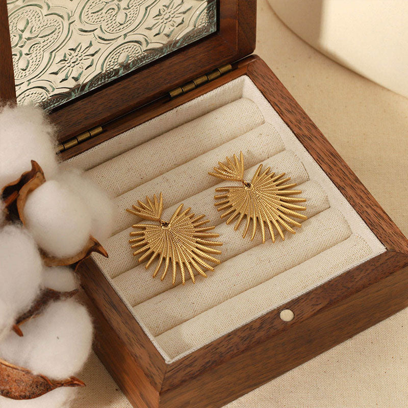 18k Gold Plated Exaggerated Fan-Shaped Design Hypoallergenic Wholesale Stainless Steel Fashion Earrings for Women/Ladies