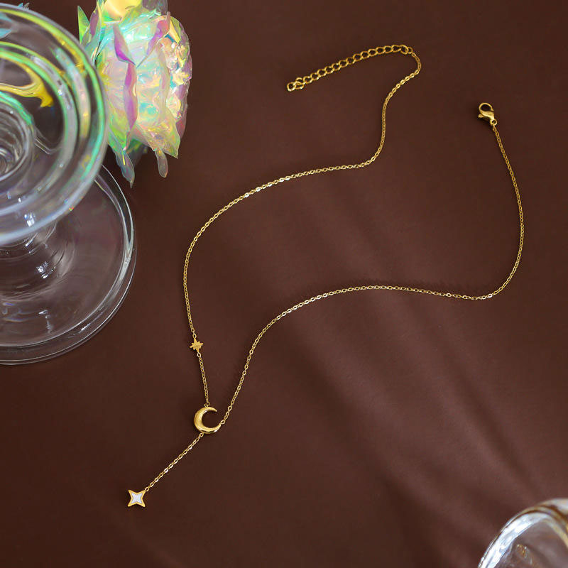 2025 New Design Wholesale Non Tarnish Stainless Steel PVD 18K Gold Plated Star Moon Pendant Necklace