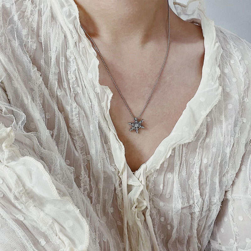 2025 New Hot Selling Ins Silver Necklace Rotatable Zircon Snowflake Christmas Gift Diamond Stone Mainly Stainless Steel Jewelry