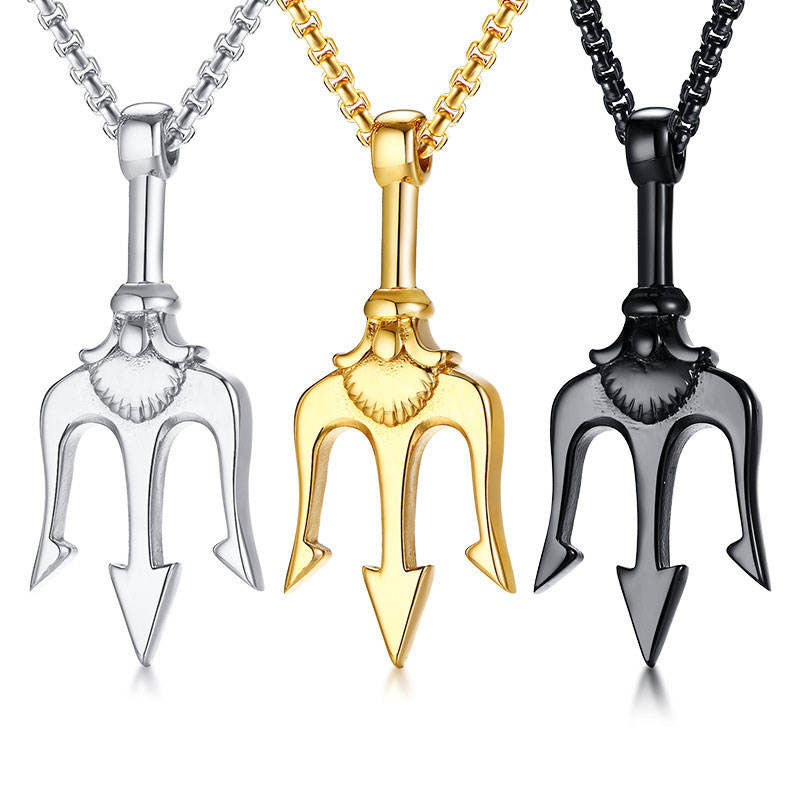 Europe and America Long Charm Necklace Jewelry Stainless Steel Non Tarnish PVD 18K Real Gold Plated Trident Necklace for Men