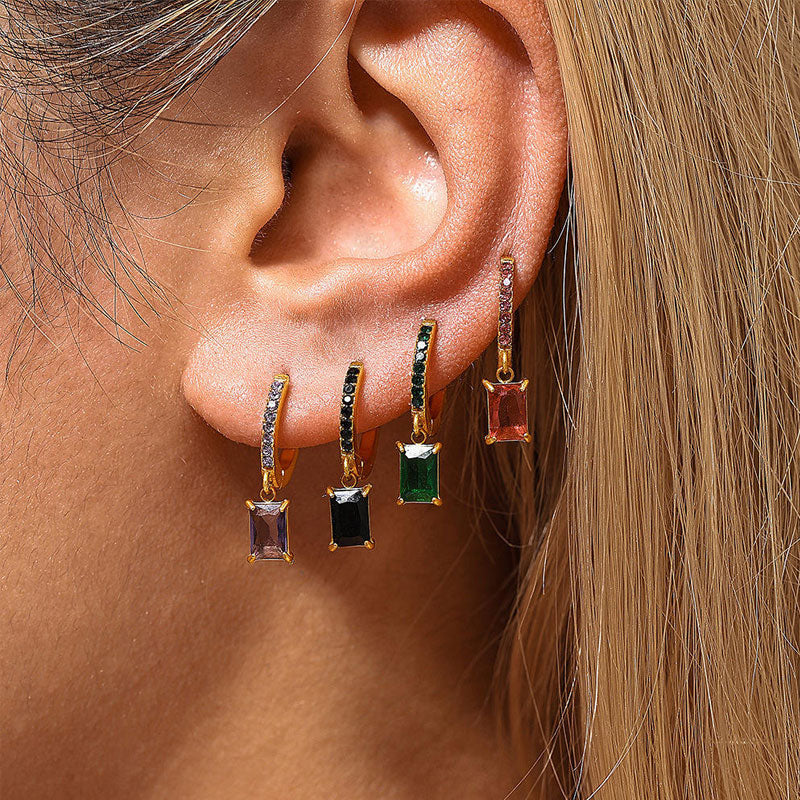 Square Pendant Zircon Earrings Joyas De Acero Inoxidable Al Por Mayor Stainless Steel 18K Gold-plated Fashionable Earrings