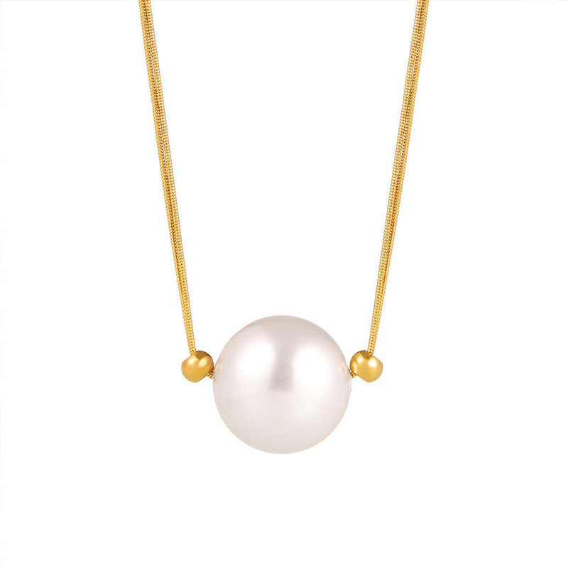 Stainless Steel 18k Gold Plated Pearl Jewelry 9mm Shell Pearls Snake Chain with Pearl Pendant for Women