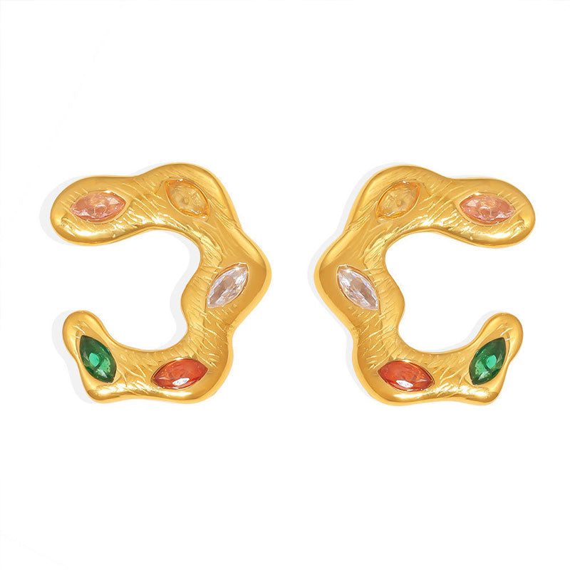 Vintage Premium Stud Earrings for Women 316L Stainless Steel Galvanized Zircon Irregular Classic Style Pre-Loved Niche Jewelry